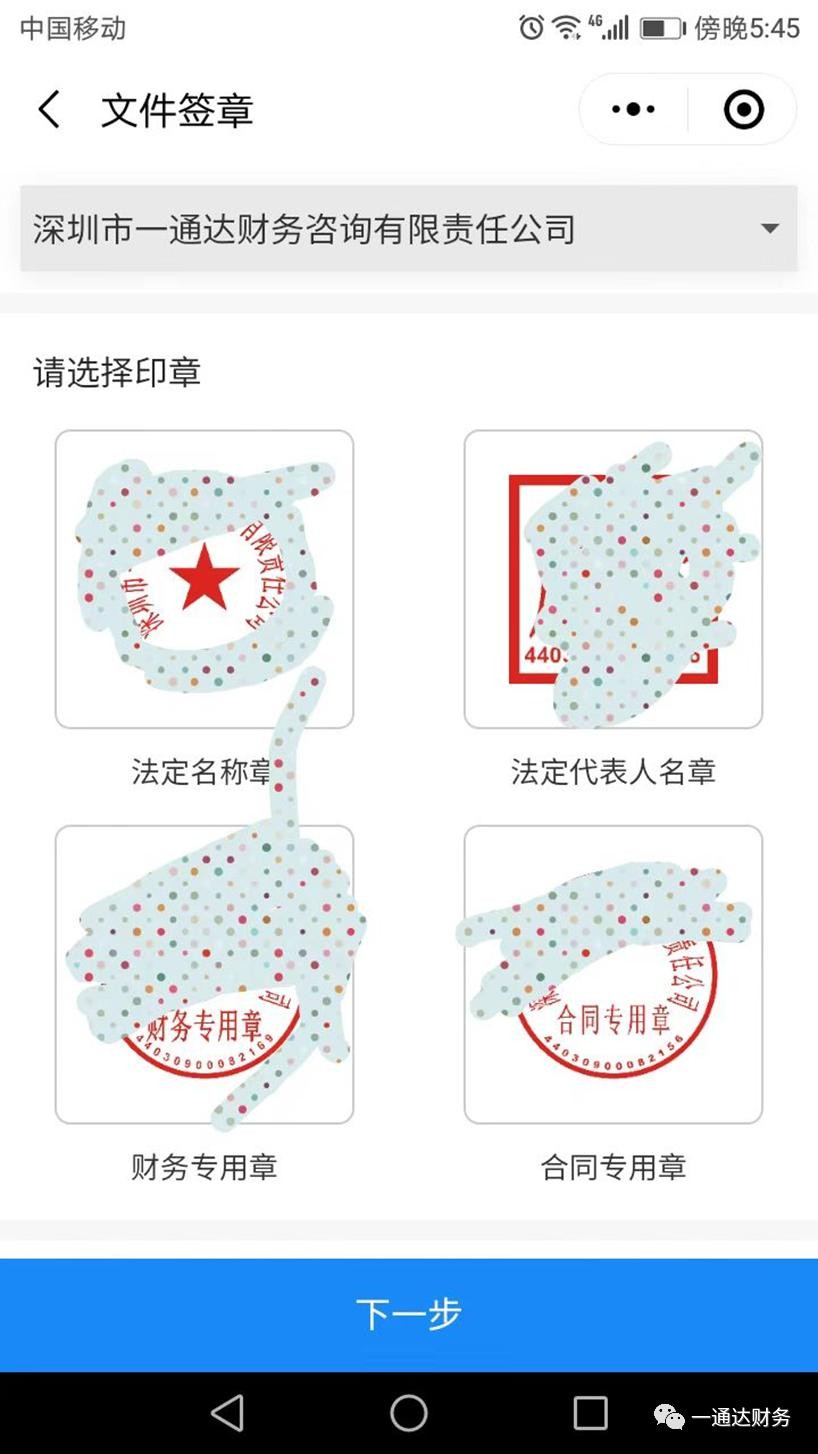 深圳公司可免费领取一套四枚电子印章:包括法定名称章、财务专用章、合同专用章、负责人章。