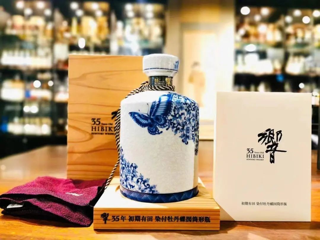 2016年,三得利为庆祝日本瓷创立400周年而推出了一对酒瓶,分别是:响35年有田烧染付牡丹蝶图、35年九谷烧牡丹蝶图调和威士忌。为纪念日本瓷器诞生 400年,三得利威士忌Hibiki和九谷烧合作,2016年发行的响35年向继承了日本文化的传统致敬。它是由三得利第四代首席调酒师「福与伸二」精选酒龄 35~54年的麦芽原酒及熟成35年以上的秘藏谷物原酒调配而成。
