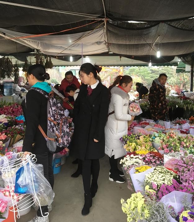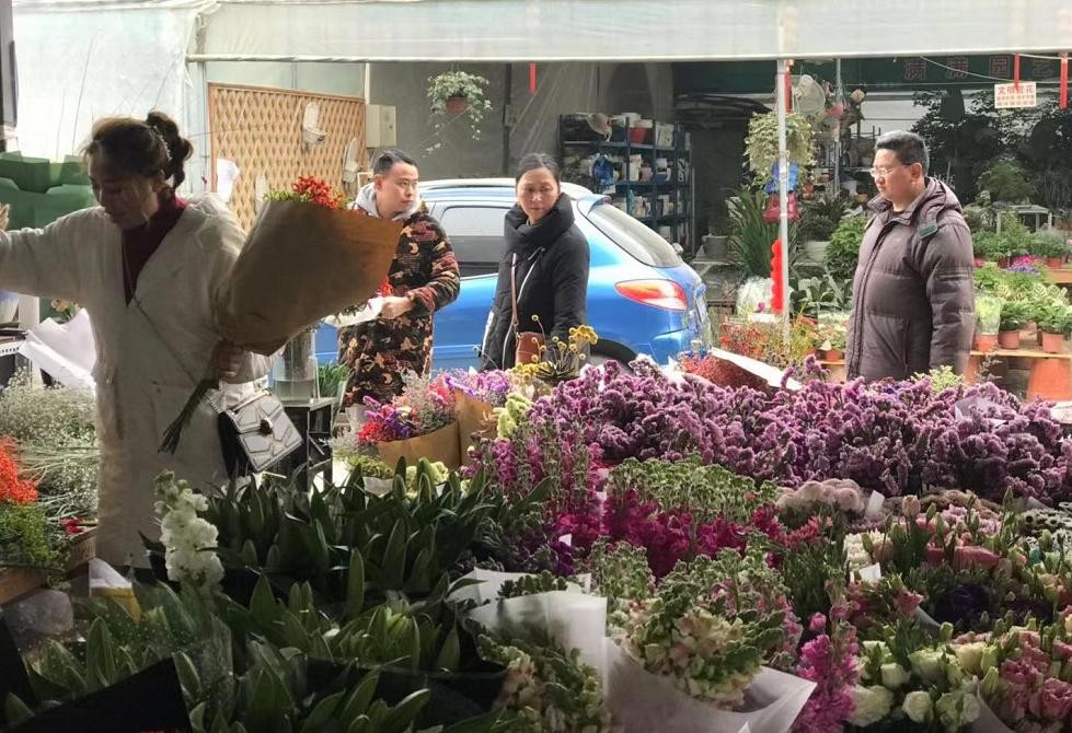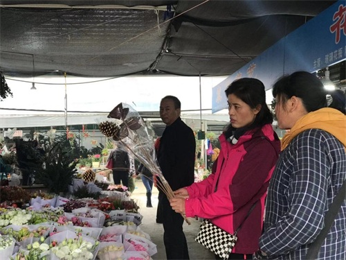 尽管22日还是周五,花市内像是提前过起了周末,无论男女老少,都在精心挑选喜爱的花朵。即使有些商户喊出了“白菜价”,但每每询问价格后的买家还会向老板讨价还价一番,不同于往日,如今老板似乎更加迫切的把花卖出去。
