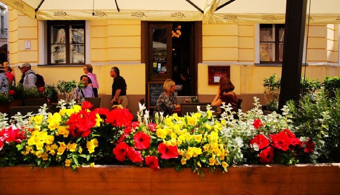 最能集中体现塔林浪漫生活场景的,是市政广场周围那一圈咖啡座,除了早晨门可罗雀之外,其它时间都是客人云集,高朋满座。人们要上一杯红酒或咖啡,坐在这里或聊天或发呆,慢慢地享受休闲时光。