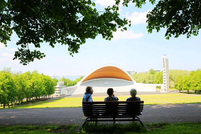 几位爱沙尼亚老人悠闲地坐在这里,聊天,发呆,她们或许在回忆音乐节举办时的情景。