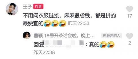 结果王梓涵回应到:"妈妈很省钱,都是拼的最便宜的",而曹颖也幽默回应到"真的"。