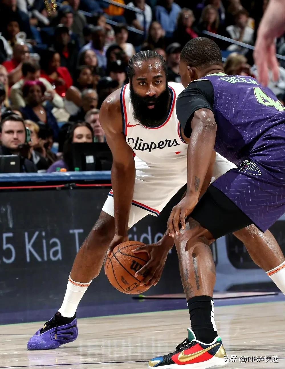 第一节哈登独得10分,鹈鹕命中7记三分,墨菲和琼斯各得9分,快船31-37落后6分,第二节鹈鹕最多时候以59-45领先14分,鲍威尔本节砍下15分,快船在中场时将比分追到56-62,第三节鹈鹕大多时候保持10分左右领先优势,本节后4分钟,快船打出一波13-6后将比分追到87-90,哈登这一节拿下13分2助攻,最后一节鲍威尔拿下16分,哈登最后时刻罚球完成绝杀。本场后,快船三连胜,战绩19胜13负排名升至西部第五,鹈鹕十连败,战绩5胜28负排名联盟垫底。