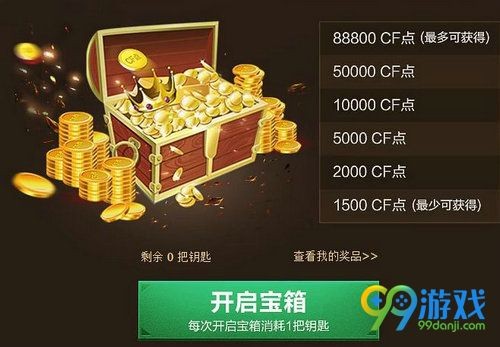 3、每次开启宝箱消耗1把钥匙,宝箱内有CF点,100%有礼;