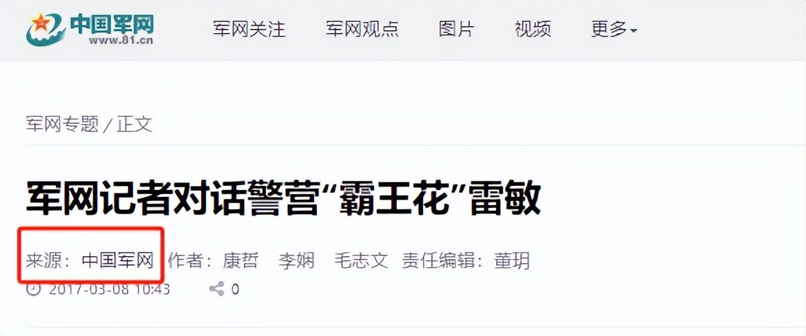 信息来源:中国军网-2017-03-08-军网记者对话警营“霸王花”雷敏