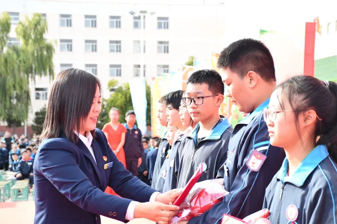 九年级政教主任杨占国宣布比赛成绩并组织颁奖