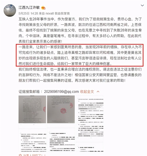 功夫不负有心人,因为姚策的生父家族里有人把DNA留在了数据库里,所以他们很快找到了姚策的亲生父母。
