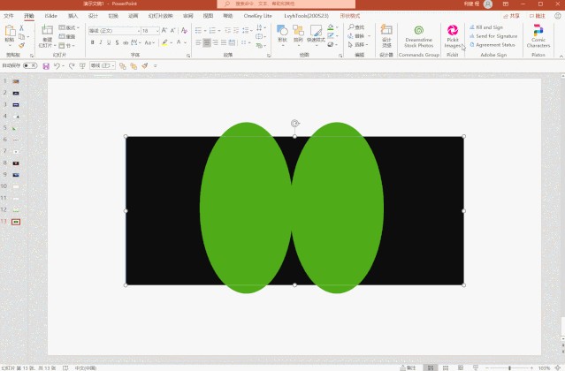 我们插入矩形,然后插入两个圆形(椭圆),像下图这样摆放好位置。