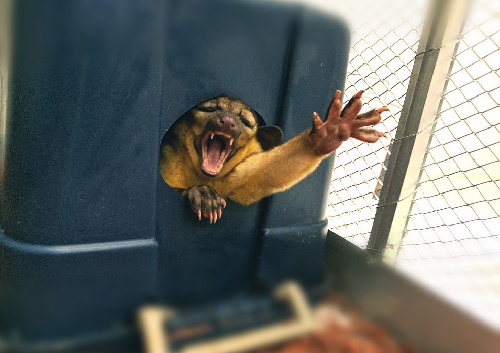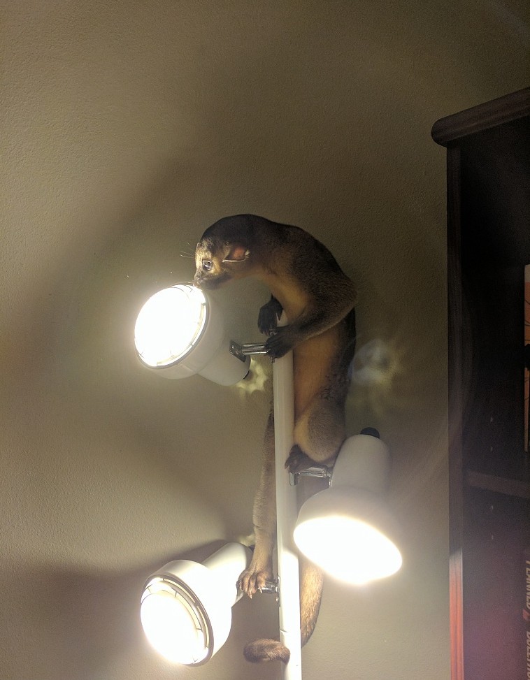 美国顽皮蜜熊被养做宠物 白天睡觉晚上到处攀爬