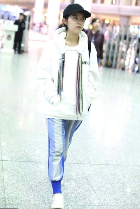 赵今麦发声后首现身,白色卫衣配彩色帽绳