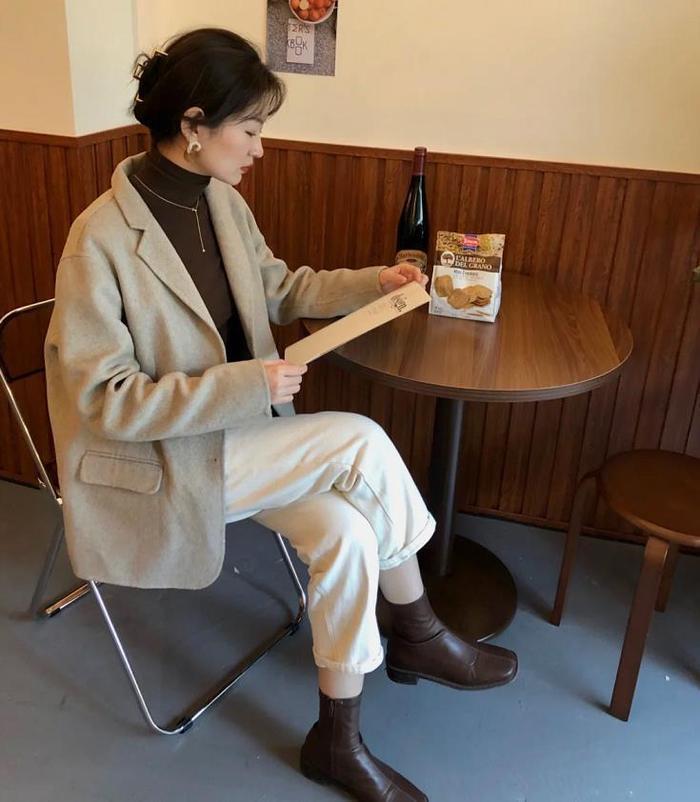 秋冬穿短靴,怎么搭配才更好看呢?可以多遵循一些穿搭技巧,总归是没有错的。这一套穿搭中,运用了两种穿搭方式,上身利用的是叠穿法,这对于寒冷的秋冬季节来说,叠穿不仅能增加造型层次感,还实现了保暖的效果。