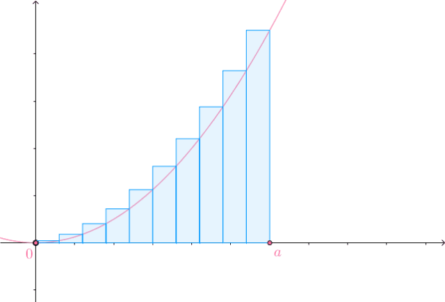 要求解这个曲边梯形的面积,我们可以将区间[0,1]分成许多小区间,把该曲边梯形拆分为许多小曲边梯形,每个小曲边梯形可近似看作矩形,用矩形的面积近似代替小曲边梯形的面积,得到每个小曲边梯形面积的近似值,对这些近似值求和,就得到曲边梯形面积的近似值。可以想象,随着拆分越来越细,近似程度就会越来越好。