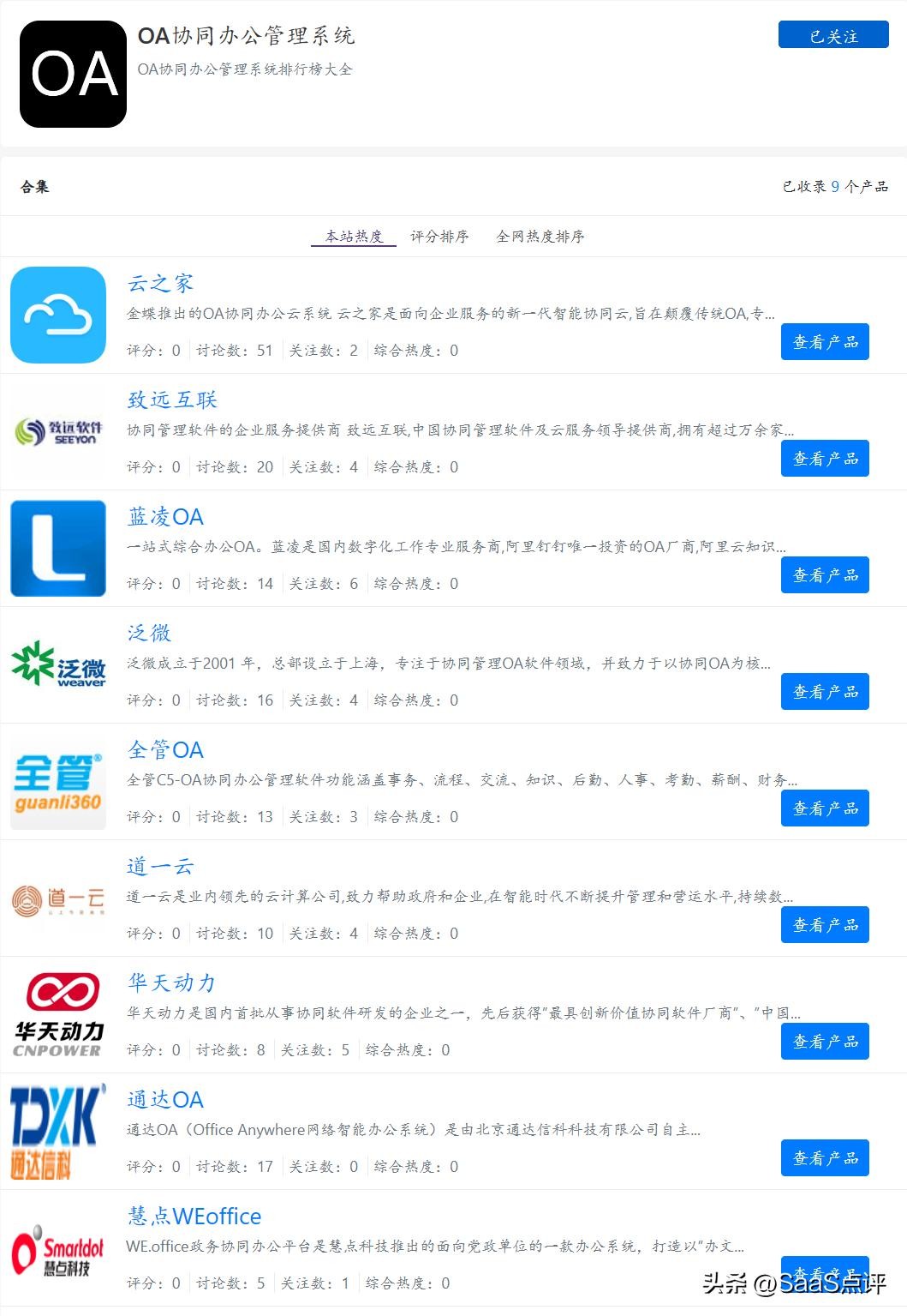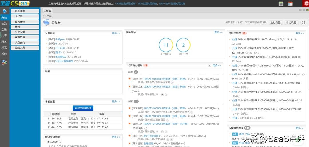 SaaS点评网OA协同办公管理系统排行榜