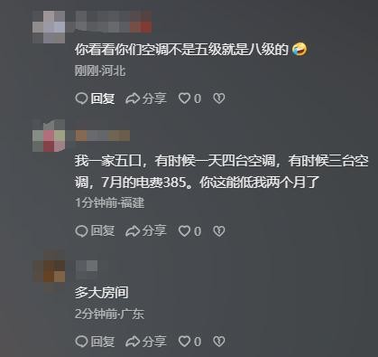 网友说:我这里一块二,但觉得有猫腻,一台空调,上个月电费八百多