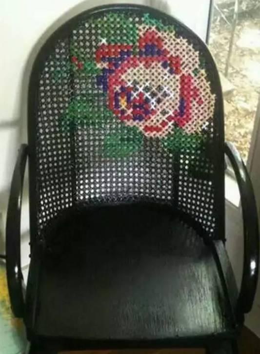 ▼ 在竖绣椅子上横绣十字绣绣