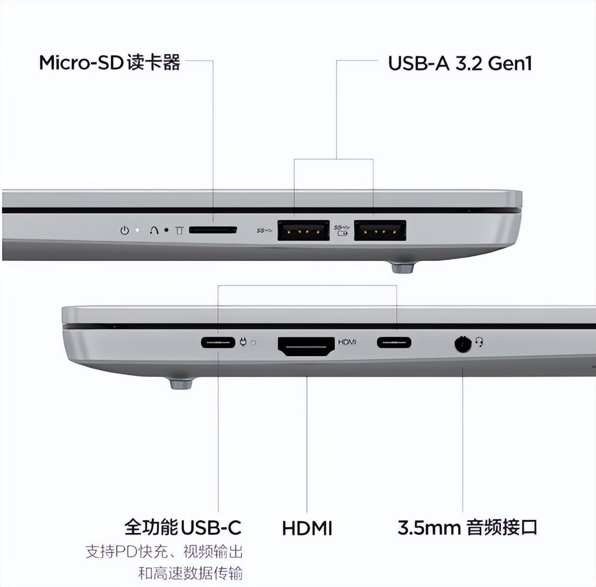 在机身接口方面,两者相差不大,华硕无畏15i 2023提供的是3.5mm音频插孔、雷电4接口、USB 3.2、USB2.0、以及HDMI接口的组合。而联想小新16 2023这边双USB-C 支持PD充电(有一个为供电口),USB-A 3.2 Gen 1*2、3.5mm音频插孔、HDMI接口以及SD读卡器接口。华硕的USB口更丰富而且用上了雷电4,而联想则是提供了SD读卡器口,这一点要看使用者更习惯于什么需求才能决定。