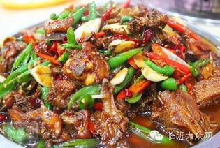 临沂辣子鸡,又称沂蒙山炒鸡、蒙阴光棍鸡,以其独特风味,风靡沂蒙山区。选用当地土生土长的草鸡,精选各种香料,用传统的农家炒鸡的方法,有的至今还沿用木柴炒鸡炖鸡的方法,火候均匀,药料和鸡肉形成了绝妙的搭配,出来的炒鸡味道回味飘香。