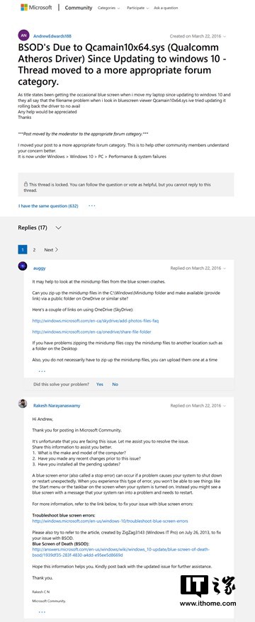 搜索的关键词就是终止代码,在贴吧、论坛特别是微软官方社区,长期存在大量精品帖子帮助求助者解答各种各样奇奇怪怪的蓝屏问题,微软官方论坛中高质量帖多为英文,翻译一下不难理解,分析准确、步骤详细且讨论时间长达数年。