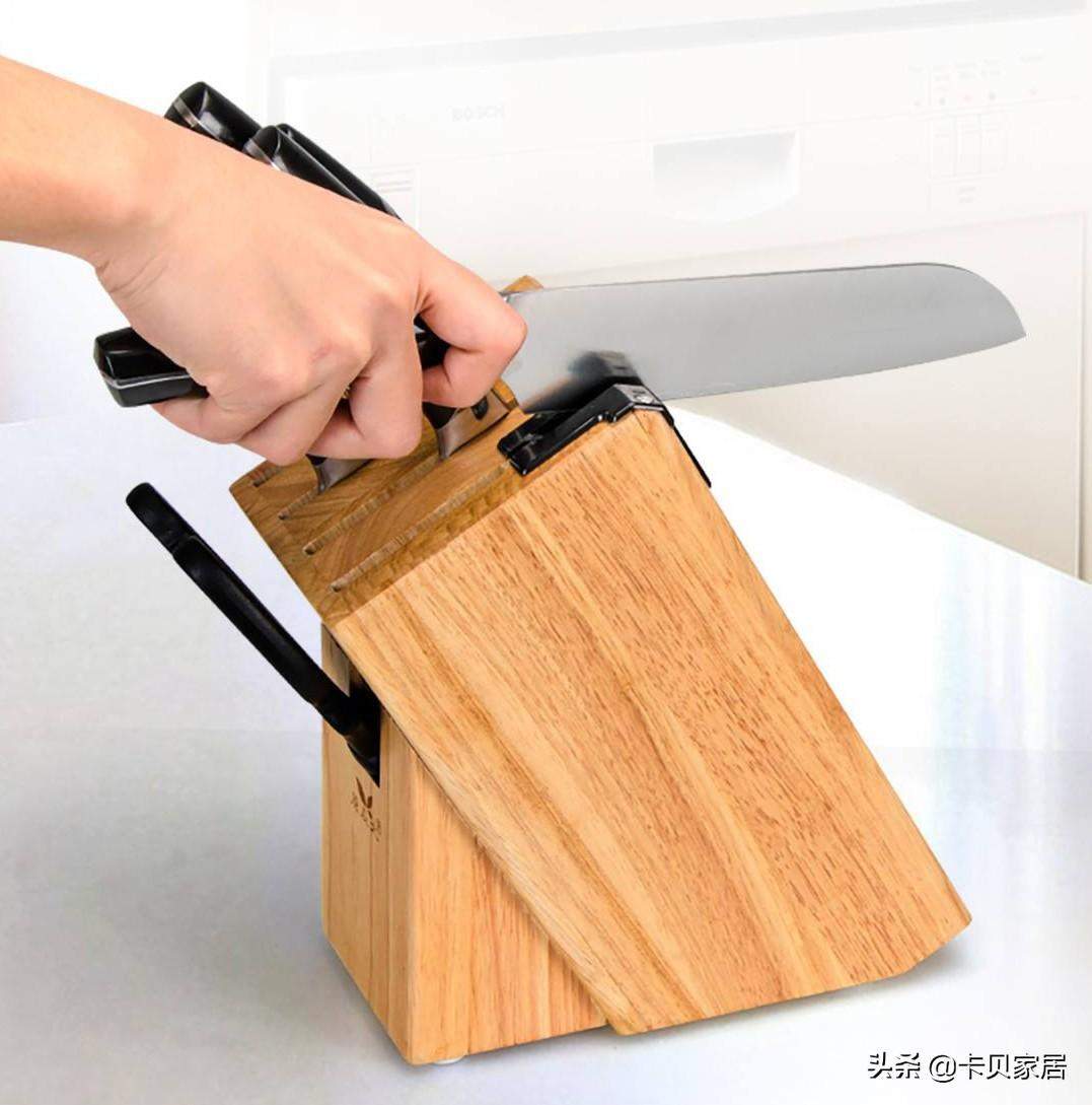 普通刀架有放置在台面的,也有壁挂式的。好处就是相对于随手放来说,更加健康了,同时美观有序。不过碰上闷热潮湿的天气,还是难免会滋生细菌。
