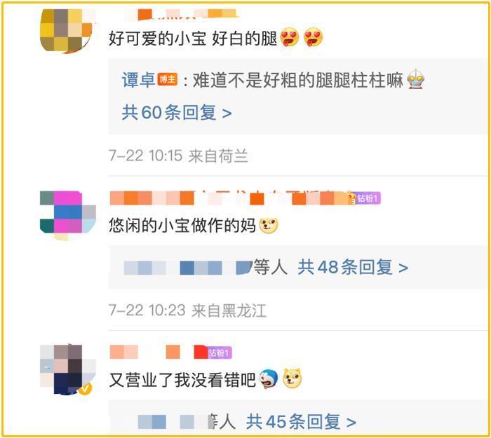 网友对于谭卓的难得爆照,都表现出了极大的好奇心和关注度。