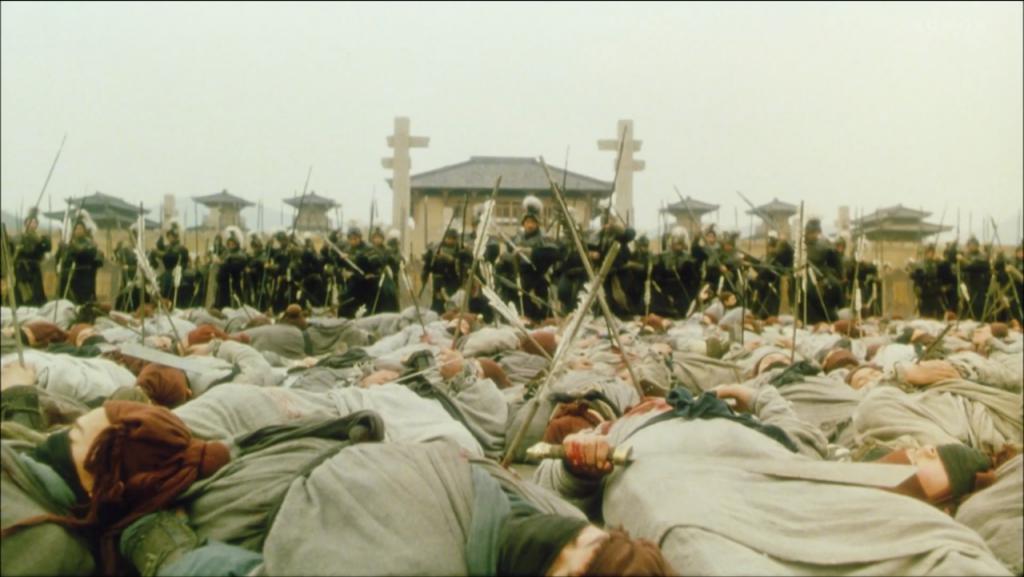 陈凯歌的画面里,我们看不到秦王扫六合的恢弘,而是阴暗昏沉的城楼上,赵军与秦军的疯狂厮杀。