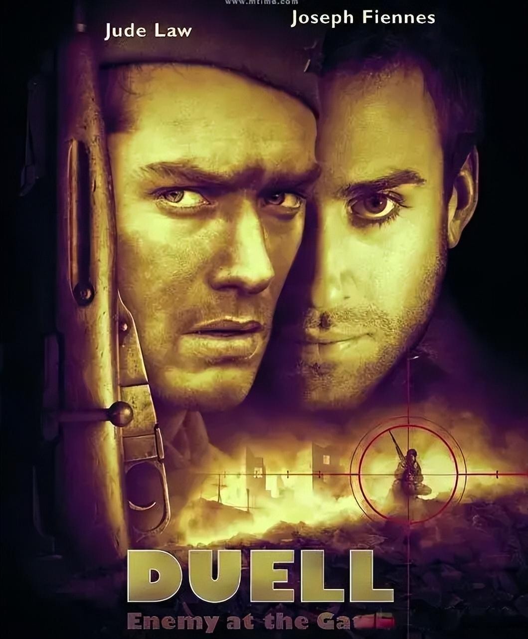 这部电影由让・雅克・阿诺执导,裘德・洛和艾德・哈里斯主演,讲的是二战期间斯大林格勒战役的故事。故事围绕两个狙击手展开,他们在敌对环境中斗智斗勇,展现了战争的残酷与人性的复杂。影片中有一场经典对决,裘德・洛饰演的狙击手与敌方狙击手之间展开了一场心理战。他们在废墟中相互追逐,时而隐蔽,时而暴露,紧张感十足。想象一下,在这场 “猫鼠游戏” 中,谁能活下去,谁又会成为牺牲品?这无疑是影片最吸引人的部分,让观众心悬一线 。