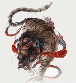它的外形像老虎,却比牛还大,长着一双翅膀,性情暴虐凶残。