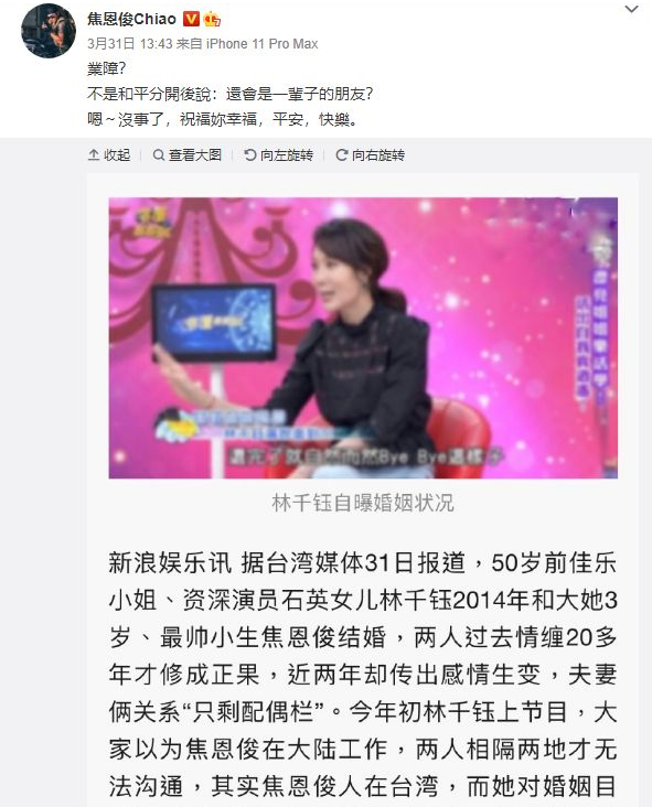 巧合的是,他和义弟焦恩俊,是在同一天爆出了婚变,也是让人哭笑不得。