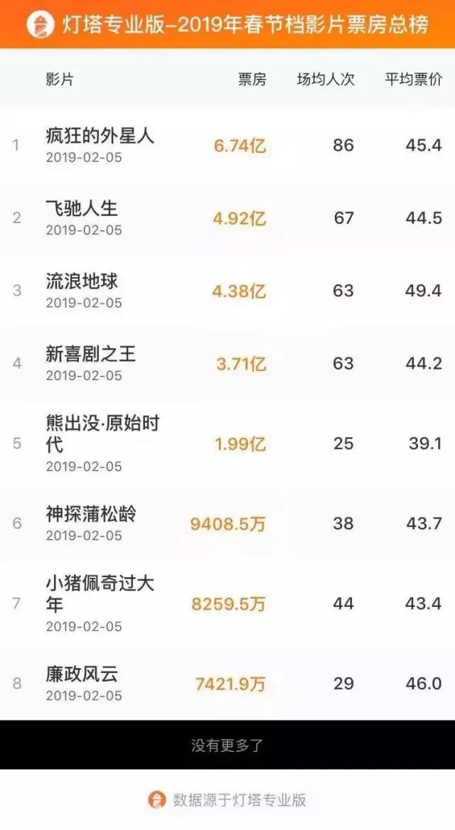 事实上,此前最被看好的能在2019年春节档夺冠的,是宁浩导演的《疯狂外星人》。然而最新票房结果显示,《疯狂外星人》仅是票房亚军。