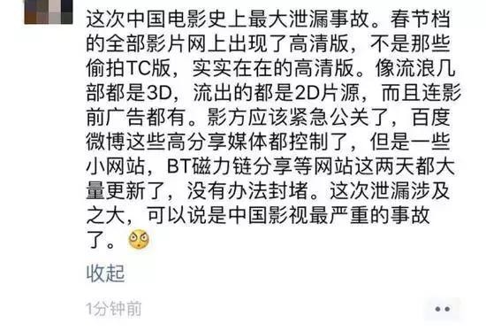 今年的泄露是全方位的,所有的影片都流出了高清版,这是让片方们都措手不及的。因为影片清晰得完全不像是摄录,而是像从源文件拷贝出来,这样的集体泄露就显得尤为可疑,有业内人士将其称为“中国电影史上最大泄露事故”。