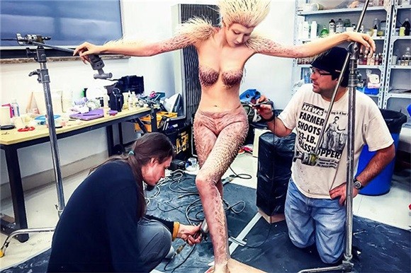 Yes娱乐2月23日综合报导《三打白骨精》上周在台上映,截至今日全台票房破千万,观众皆给予高度好评,在特效出众、笑果十足的上乘口碑加持下,每日票房都往上攀升。除了白骨妖后大受赞誉,身旁的三位妖精更是受到网友高度关注,而这三位更是大有来头「蝙蝠妖」是马来西亚美女-齐浠儿,「蛇妖」为人气女星-魏璐、「箭猪妖」则是大名鼎鼎的云南巨乳-母其弥雅,片商更曝光三人半裸上妆的过程照。