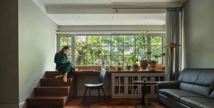 这个窗台1米高且很窄,原本只能摆放些花花草草,人无法走上去,更别说放家具。