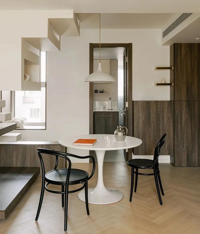 陈茜茜和傅翀的解决办法是:一区多用,通过“叠合”,让小户型拥有大平层的空间感。