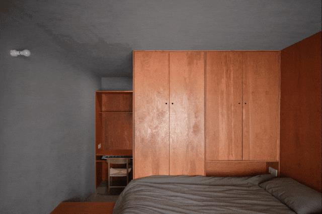 吴状夫妇在不同功能区做了地面高差的设计:儿童房做了榻榻米,卧室做了逐级的踏步和抬高,削弱了因空间狭小、高耸带来的消极影响,制造人在视觉上的游览感,而抬高的部分,又可以作为收纳空间。