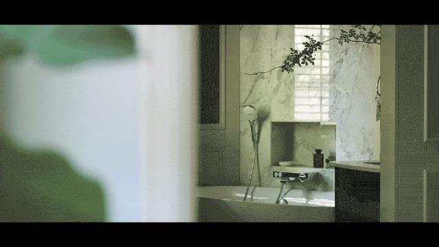 为此,她先是摆放一张长桌子占据视觉中心,用直线延展空间,浴缸则顺应着空间斜放,并增加壁龛用于收纳盥洗用品。