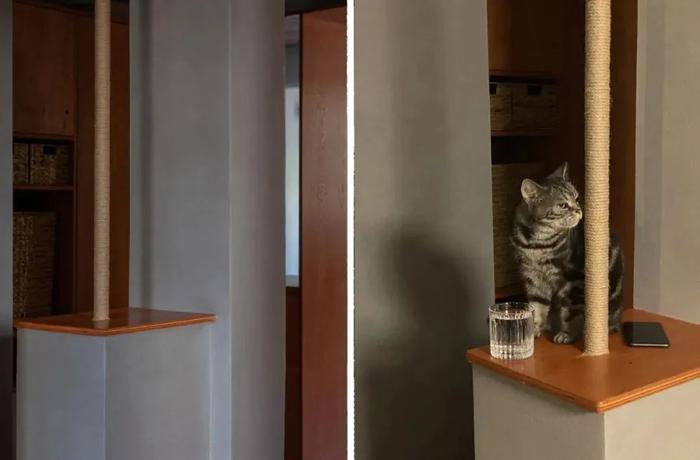 起加固作用的结构部件,缠上麻绳后,成为了猫咪玩乐的猫爬架