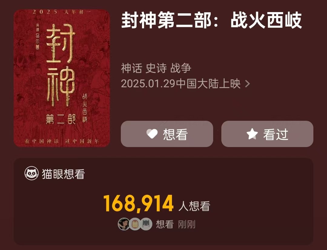 猫眼数据热度榜单也随之出炉,其中备受大家期待《封神2》才仅仅排倒数第二,那第一名会是哪一部电影呢?