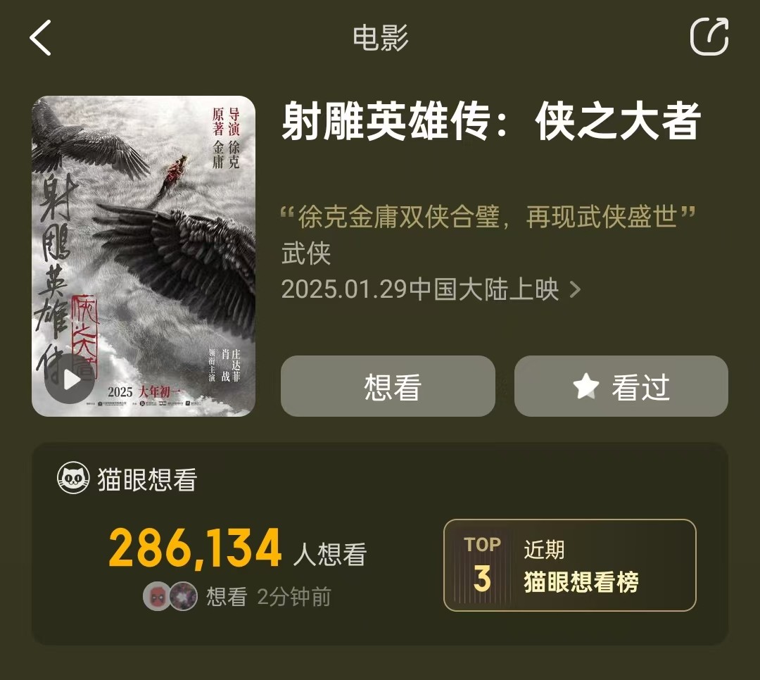 可这部电影官宣之后,立马就把观众的期待值拉满了,足足有28.6万人想看这部电影,直接拿下了第一名。