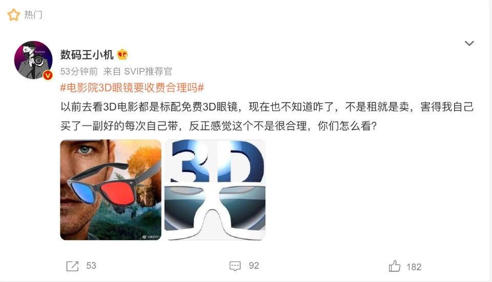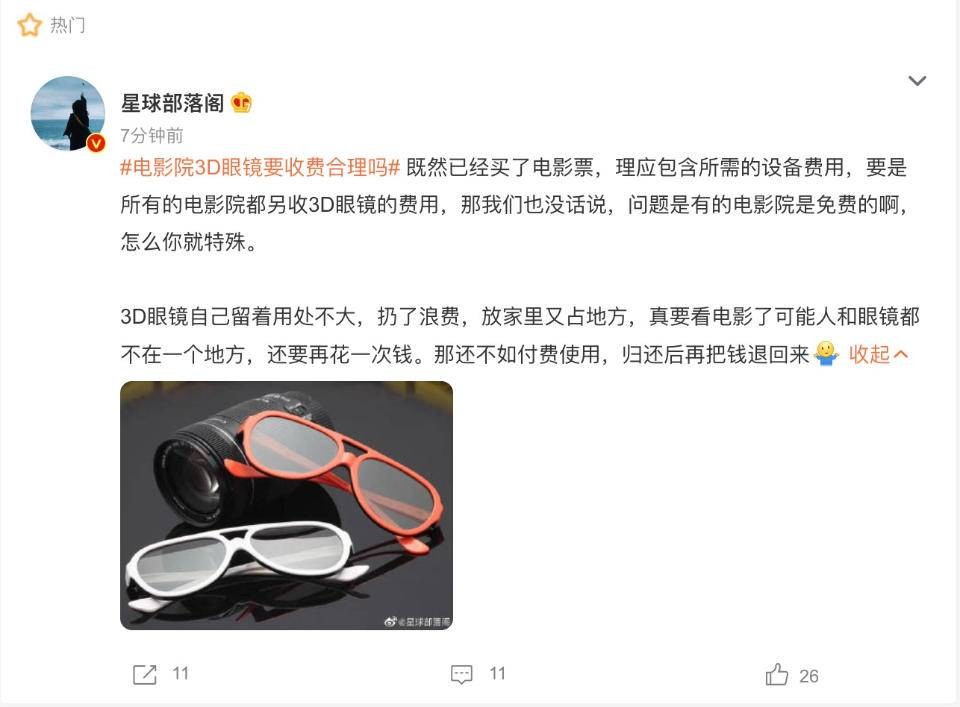 热闻|不少电影院3D眼镜要单独收费,网友:吃饭要搬桌子吗?
