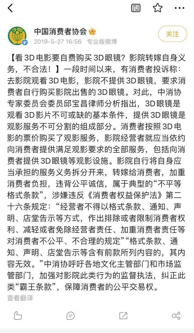 也有少数网友表示,当地的电影院一直不收取3D眼镜的费用,并不知情类似条款。