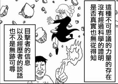 《路人超能100》,是日本漫画家一击男原作的作者ONE先生所著的少年漫画,于2012年4月起在小学馆Web漫画网「里SUNDAY」中连载至今,是该网站点阅投票率NO.1的人气作品。该作品讲述“当数值到达100时,惊人的事情即将发生。超能少年·路人的大爆发。”