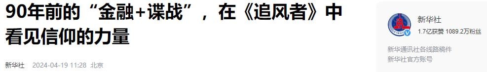 《新华社》在2024年4月19日发布关于“90年前的“金融+谍战”,在《追风者》中看见信仰的力量”的报道