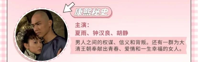 《康熙秘史》,斗争从来都不是只围绕在女人之间,男人间为权势、为女人、为尊严布阵排兵韬光养晦。钟汉良很帅。