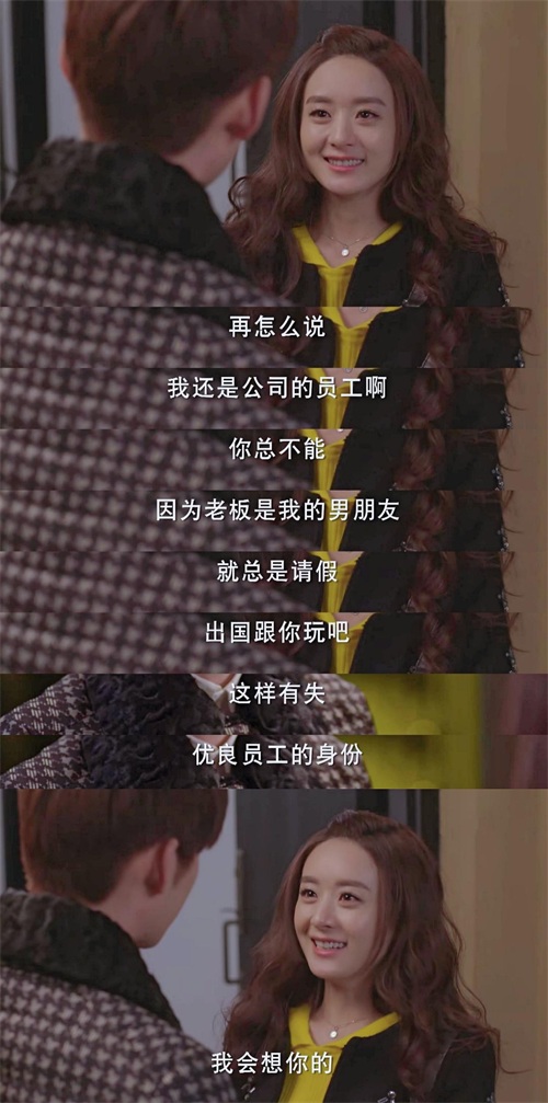 6、在与封腾确定男女朋友关系之后,封腾出国的第一件事就是想着带上自己的女朋友一起出去见 见世面。如果换了其他人可能早就高兴的找不到北了吧,但是薛杉杉并没有,她心中有自己的一杆 秤。知道什么对自己是最重要的。和男朋友去国外玩儿哪有工作拿绩效重要,薛杉杉“这样有失优 良员工的身份”。这么有事业心的薛杉杉,即便没有这个优秀的男朋友,生活也不会差的。