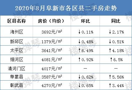并且,我还统计了阜新市其他区县的二手房价格(如下表):