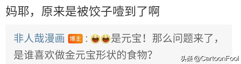 有网友说吐出的是饺子,但是《非人哉》官博也是回应道“是元宝!那么问题来了,是谁喜欢做金元宝状的食物?”