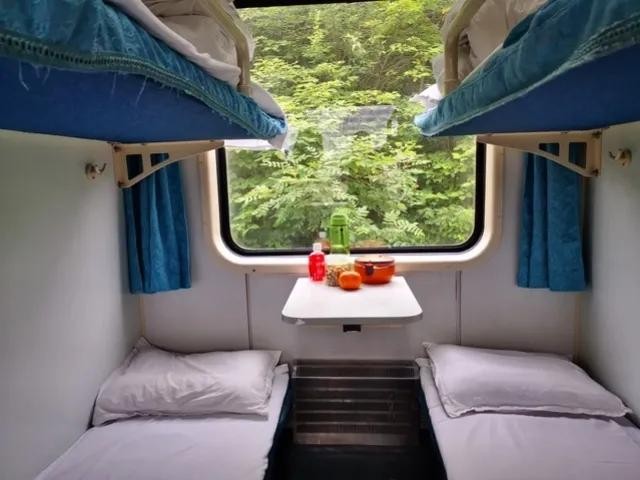 其中,软卧车厢的座位,可以调整方向,并且配备了小桌板和AC220V插座,提高了旅客的舒适度和便利性。