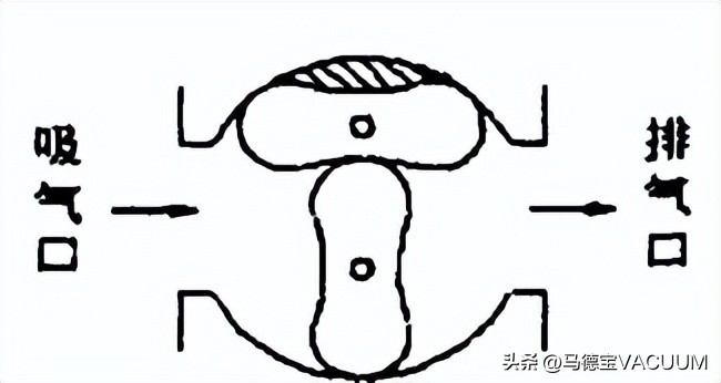 由于转子继续旋转,便把被抽气体和反冲回来的气体一起驱压到排气口处而被抽走。