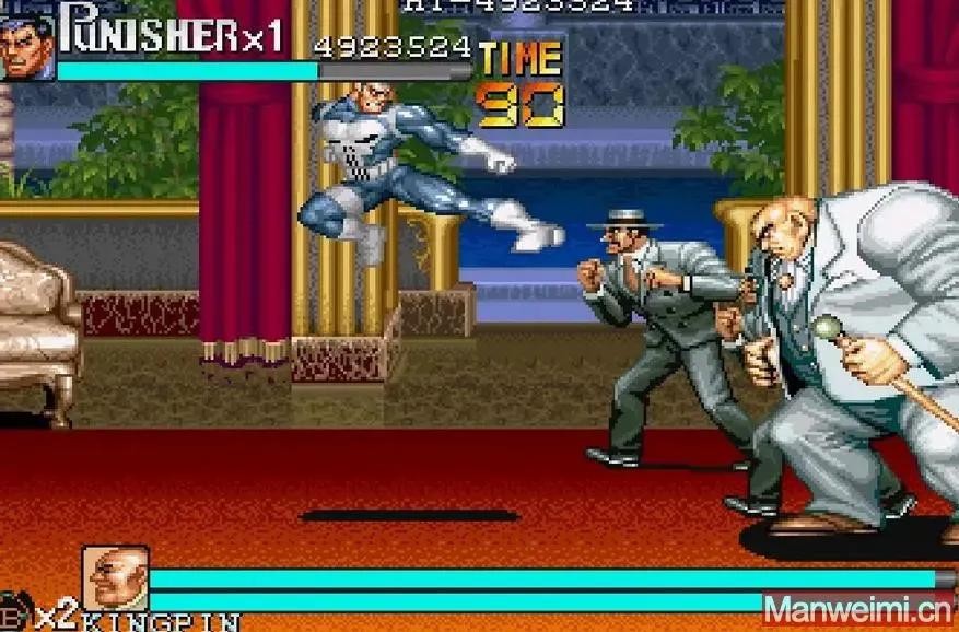 1990年《惩罚者》,金并(Kingpin) 在 NES 的《惩罚者》中首次出现在电子游戏中。一款第一人称射击游戏,带领惩罚者穿越纽约市的各个地点,而他也成为了游戏的最终boss。1993年,在名为《惩罚者》的格斗游戏中,金并将再次充当游戏的最终 Boss,并对惩罚者家人的死亡负有重大责任