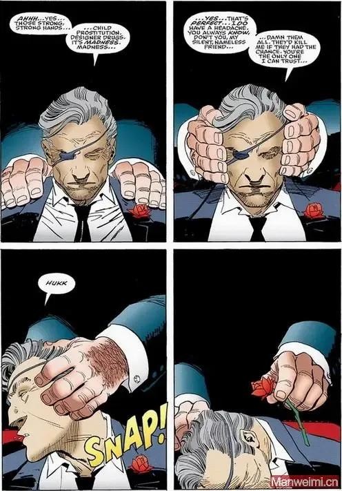 威尔逊·菲斯克走到他身后,在帮他放松按摩时,折断了他的脖子并取代了他的位置